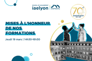 - Soirée de prestige iaelyon Alumni | 70 ans de l'iaelyon19 mars 2026A l'occasion de la célébration du 70ème anniversaire de l'iaelyon, l’association iaelyon Alumni a le plaisir de vous convier à une soirée...